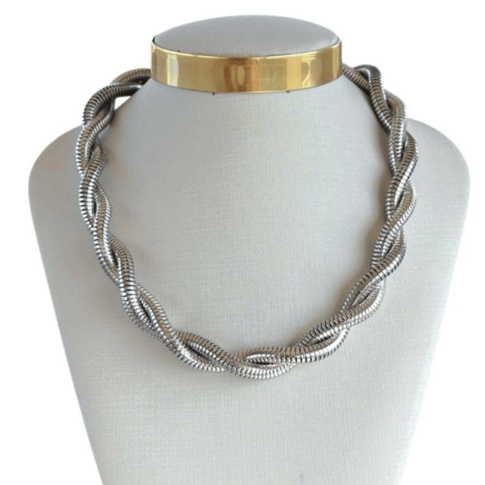 A choker perfeita para quem ama presença e sofisticação no look. Desenvolvida em aço inox e aço com banho de ouro, ela traz um design trançado moderno, brilho intenso e acabamento impecável.