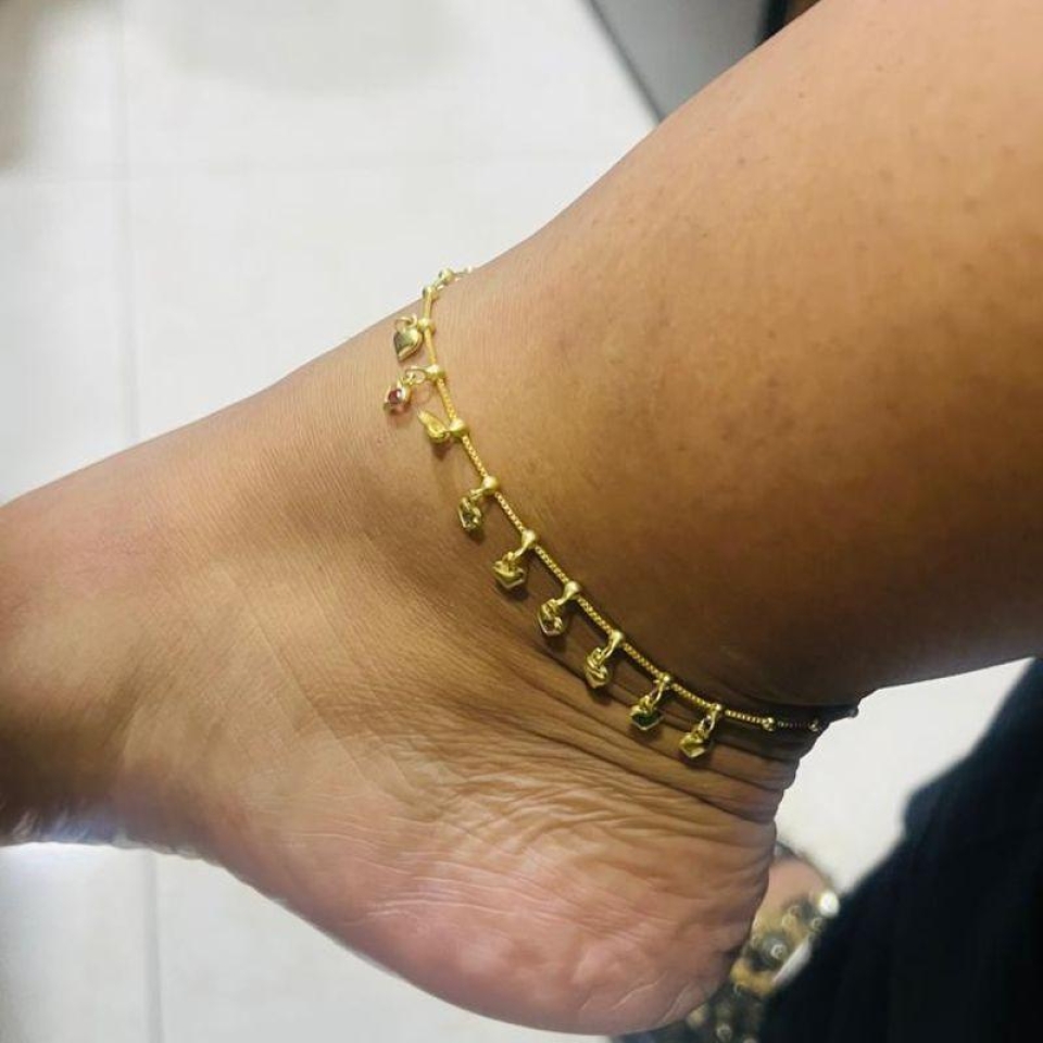 Tornozeleira Coração Banhada a Ouro